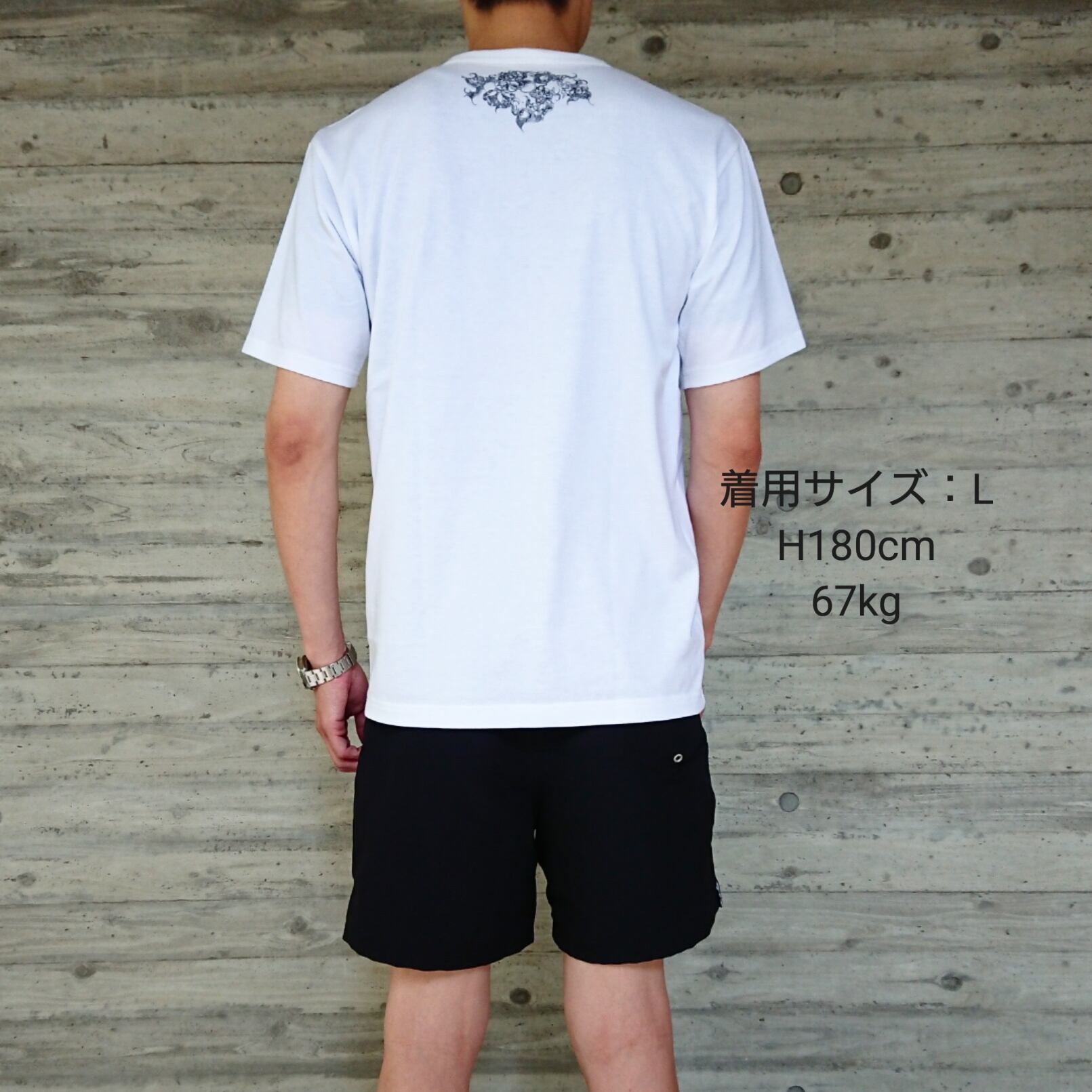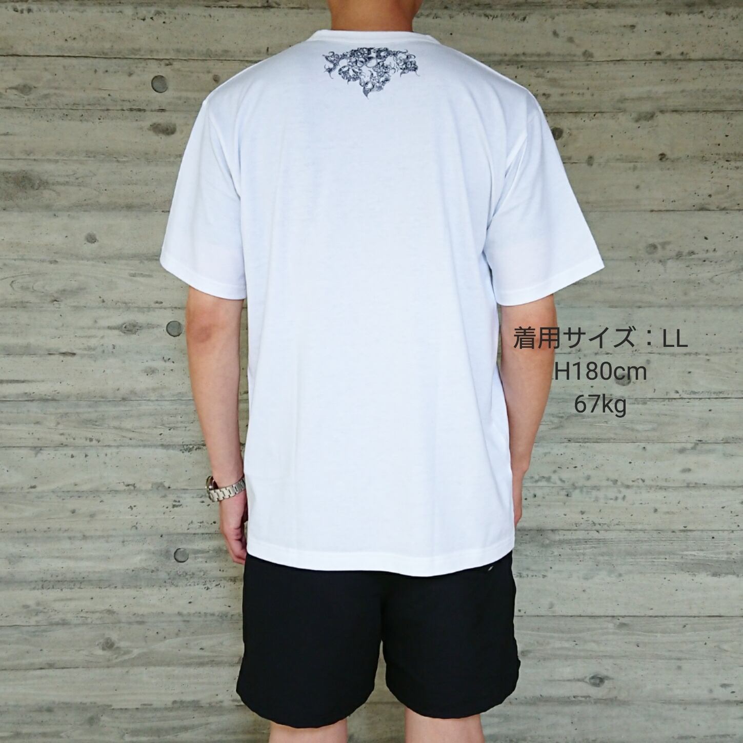 最高級のコーマ糸を使用した生地に、コツコツと手書きしました絵をバックネック部分に1枚1枚手刷りでプリントしております。