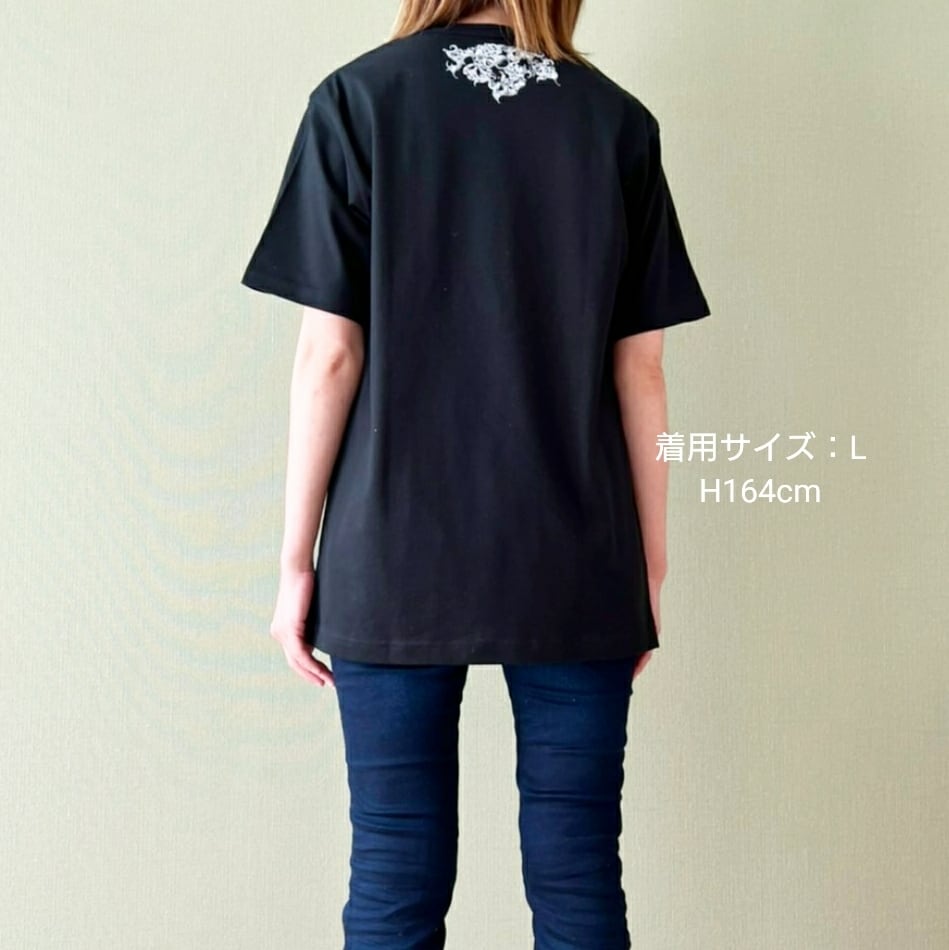 そしてどんなスタイルでもバックネックの絵は、邪魔をせず後ろからそっと見守っております。